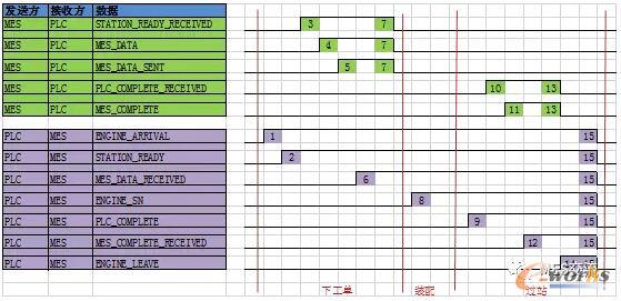 如發(fā)動(dòng)機(jī)上線工位,MES給PLC下發(fā)工單,過程可參考下圖: